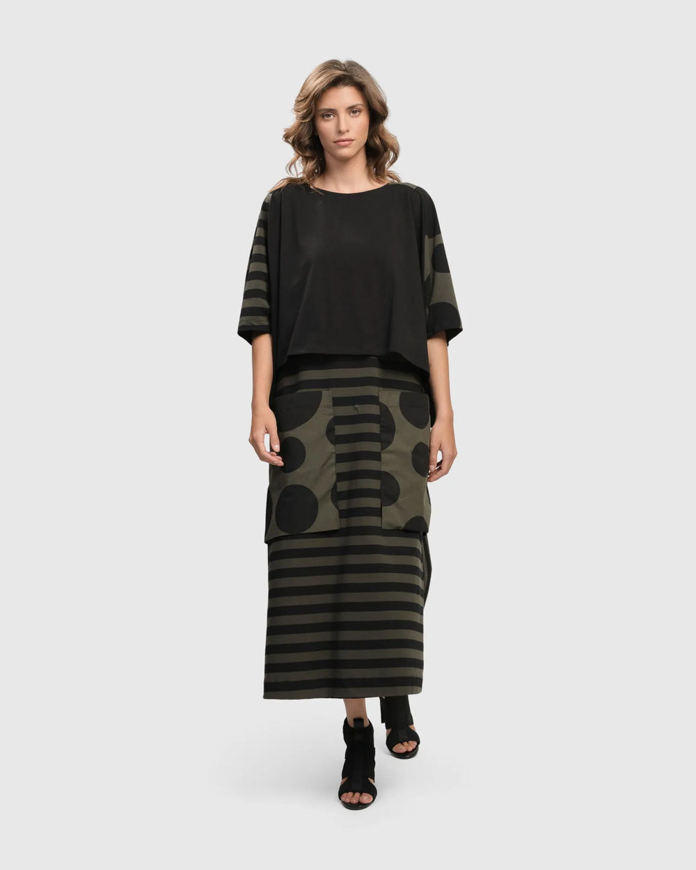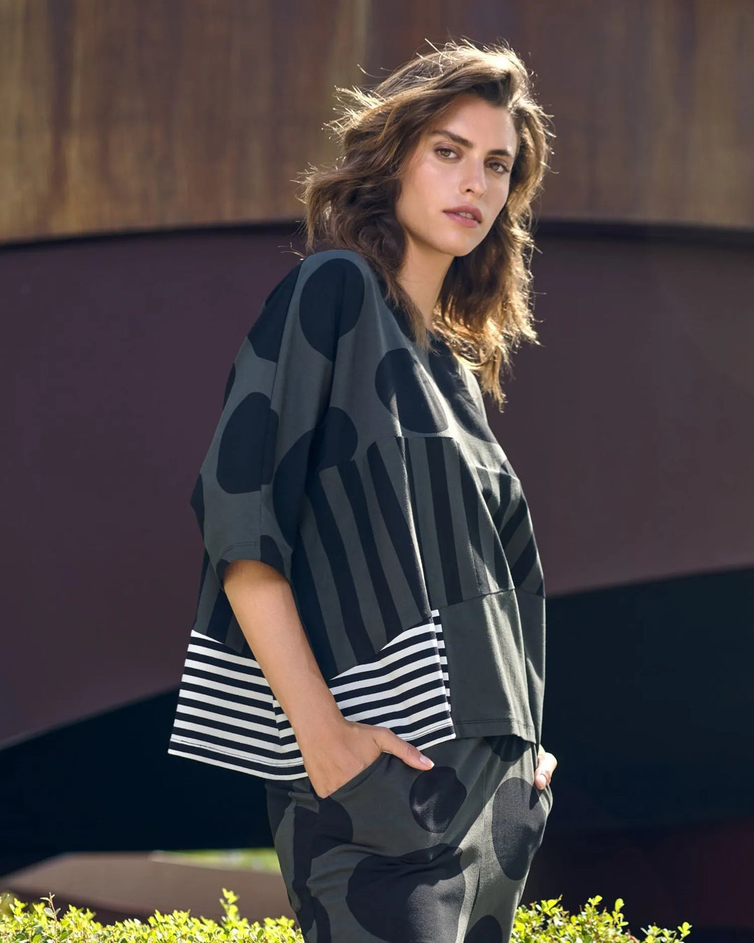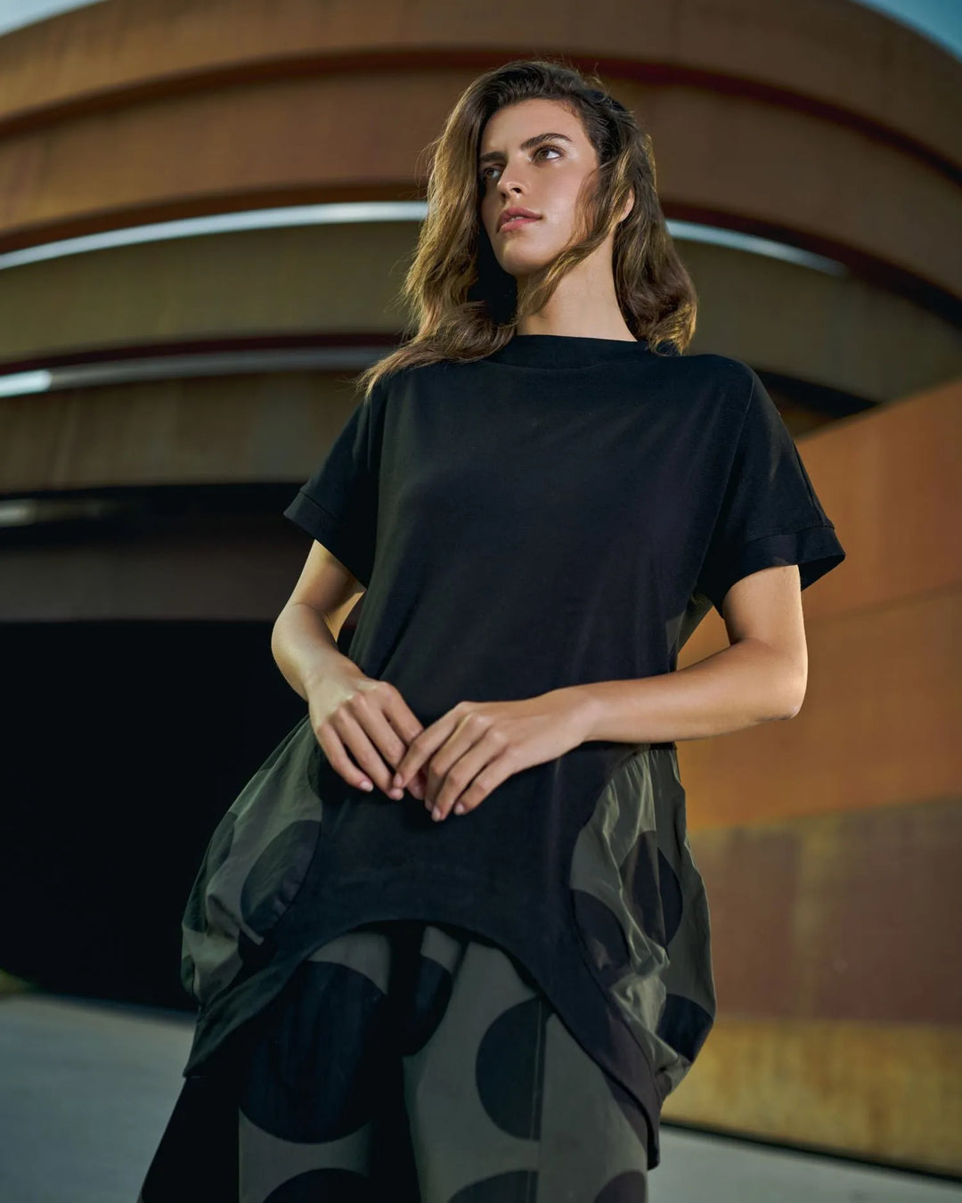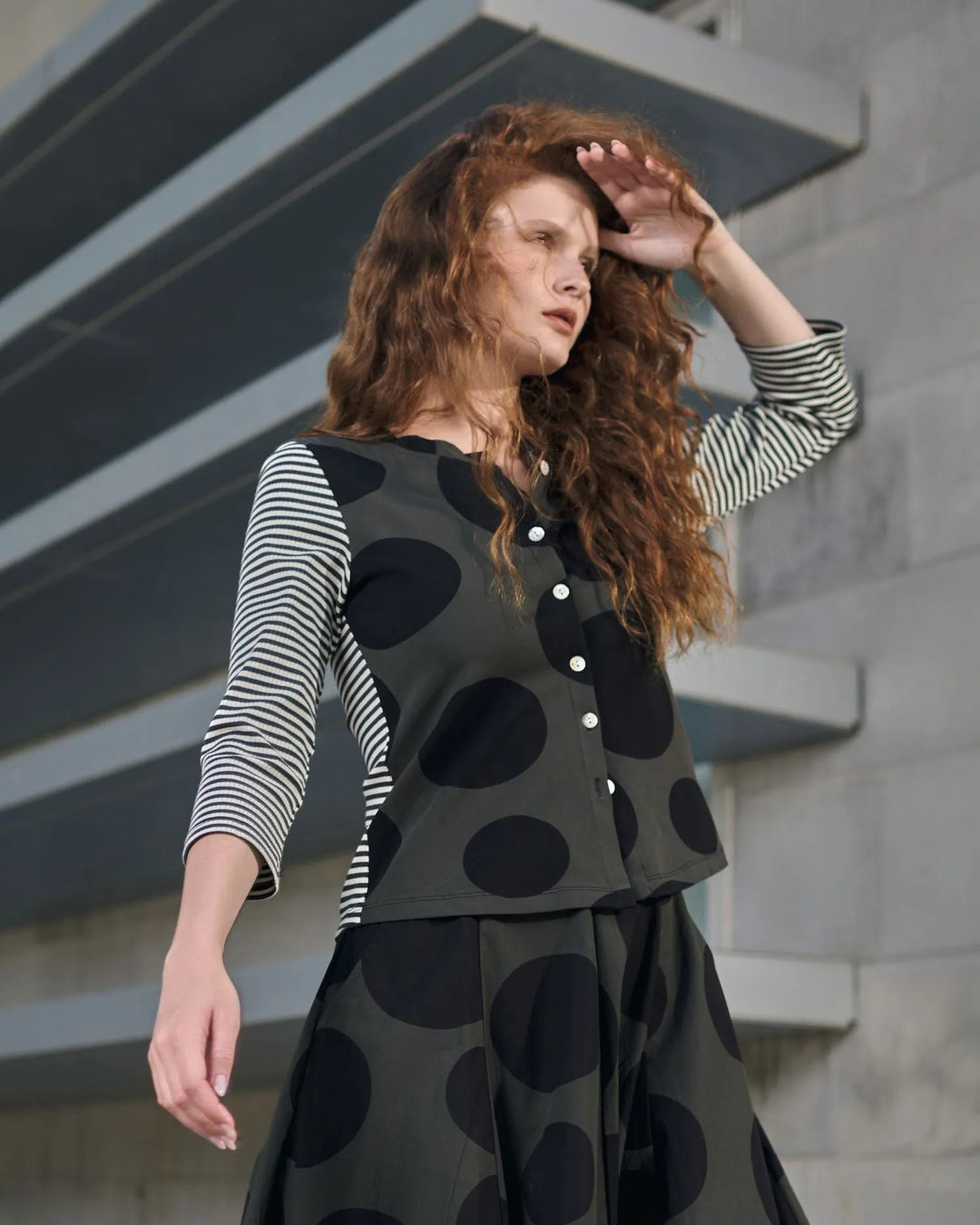 Reflect the dynamic spirit of Tokyo's fashion scene and capture the essence of a vibrant city where tradition and modernity unite. A sophisticated exploration of styles in shades of monochrome, black, and khaki — from avant-garde dots and stripes to architectural angles and unique tailoring —this lineup reinvents classic patterns in both new and returning silhouettes.