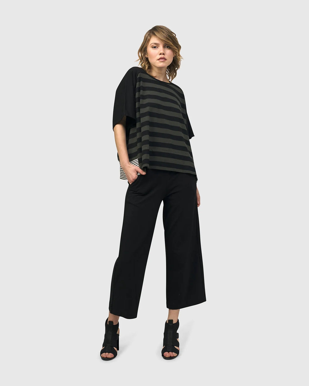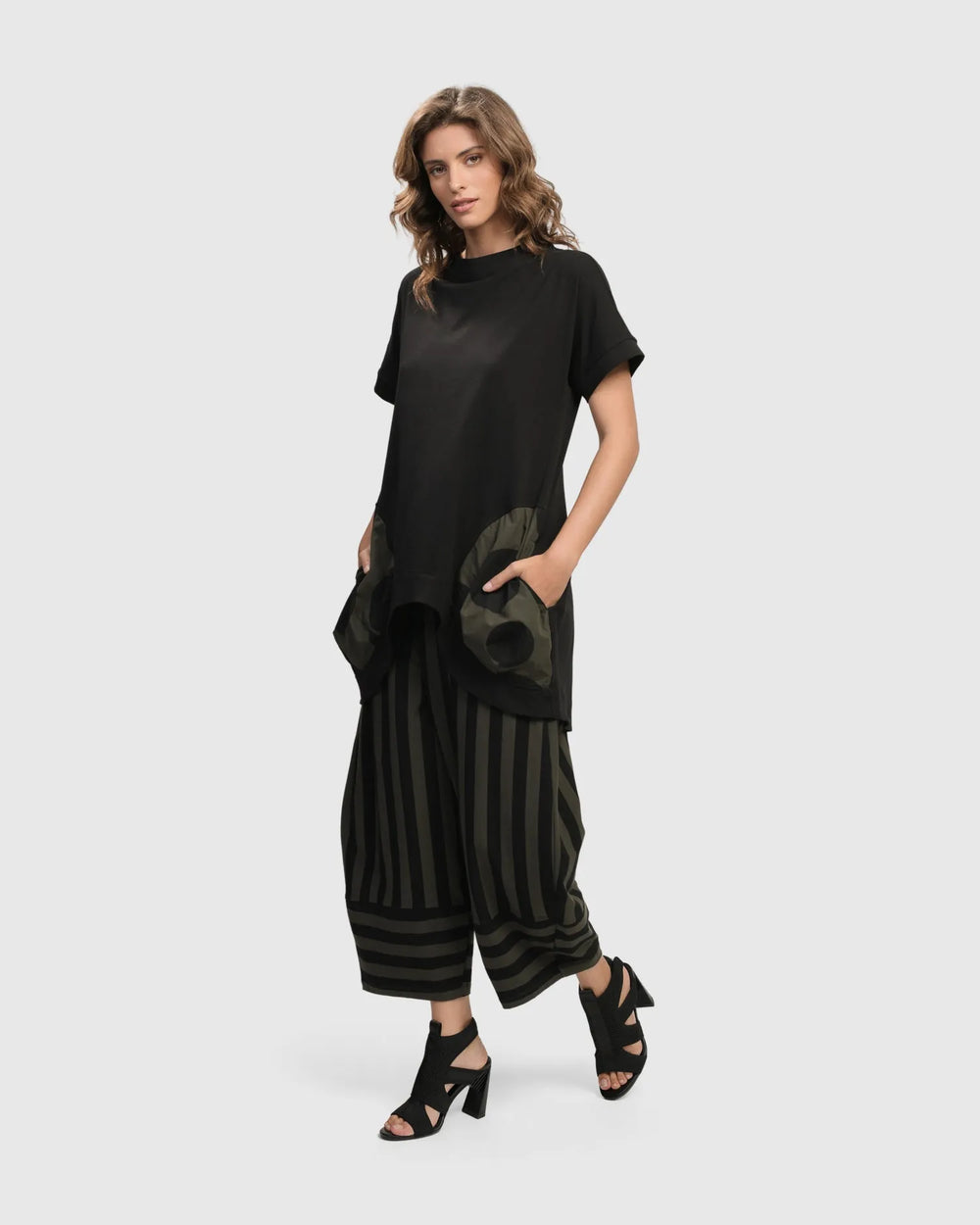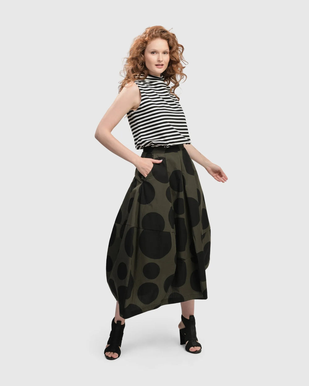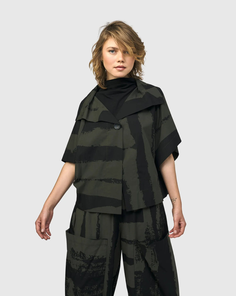 Reflect the dynamic spirit of Tokyo's fashion scene and capture the essence of a vibrant city where tradition and modernity unite. A sophisticated exploration of styles in shades of monochrome, black, and khaki — from avant-garde dots and stripes to architectural angles and unique tailoring —this lineup reinvents classic patterns in both new and returning silhouettes.