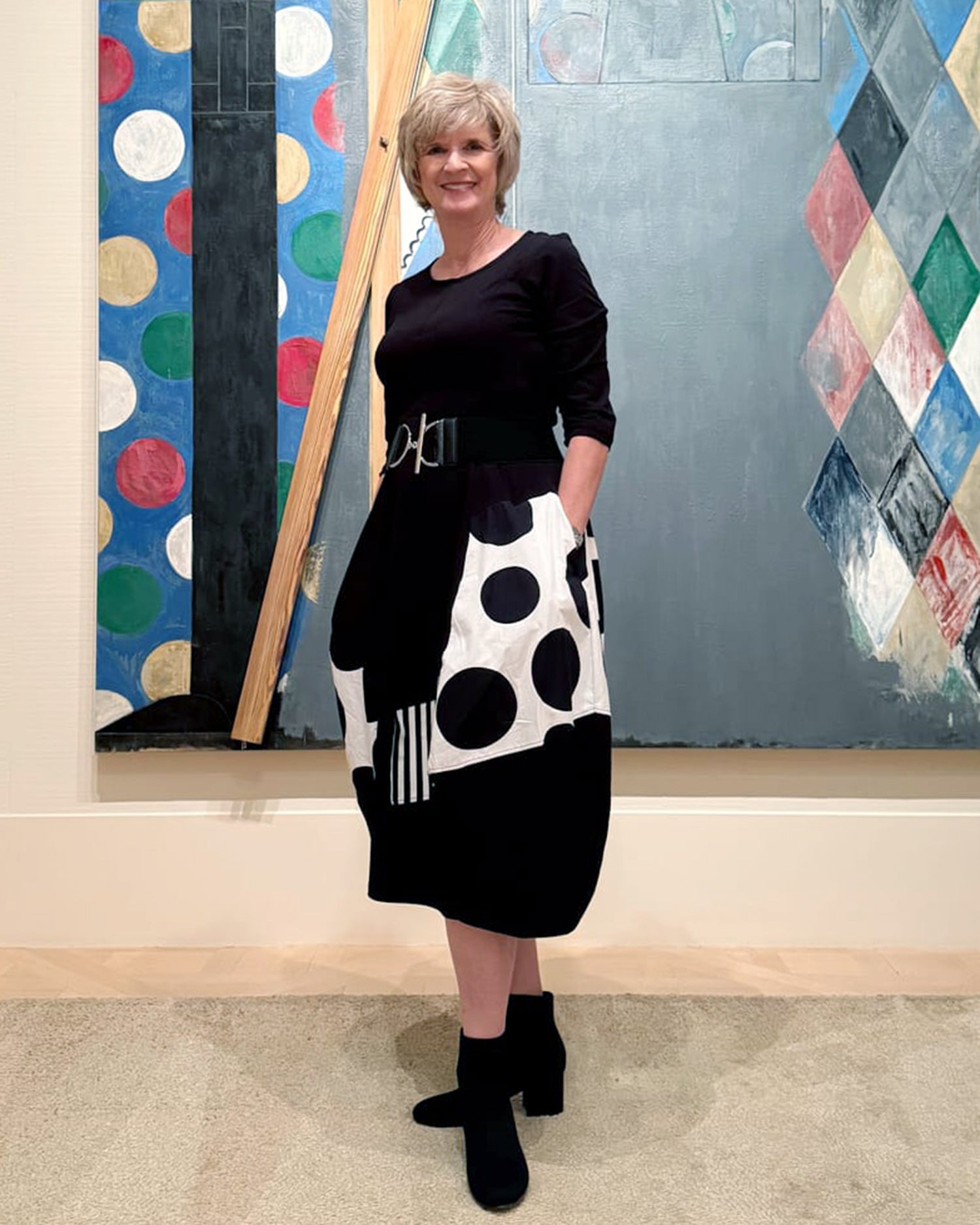These days, my style is really about how I feel in the clothes. Comfort is number one for me ā when I feel completely comfortable, I feel confident. I still enjoy my basic knits and jeans but Iāve recently fallen in love with the Iconic Stretch jeans, I love the leopard. So cool and comfy with my black v neck tops and boots.Ā I have embraced adding patterns or interesting pieces that give my look more depth and personality.
