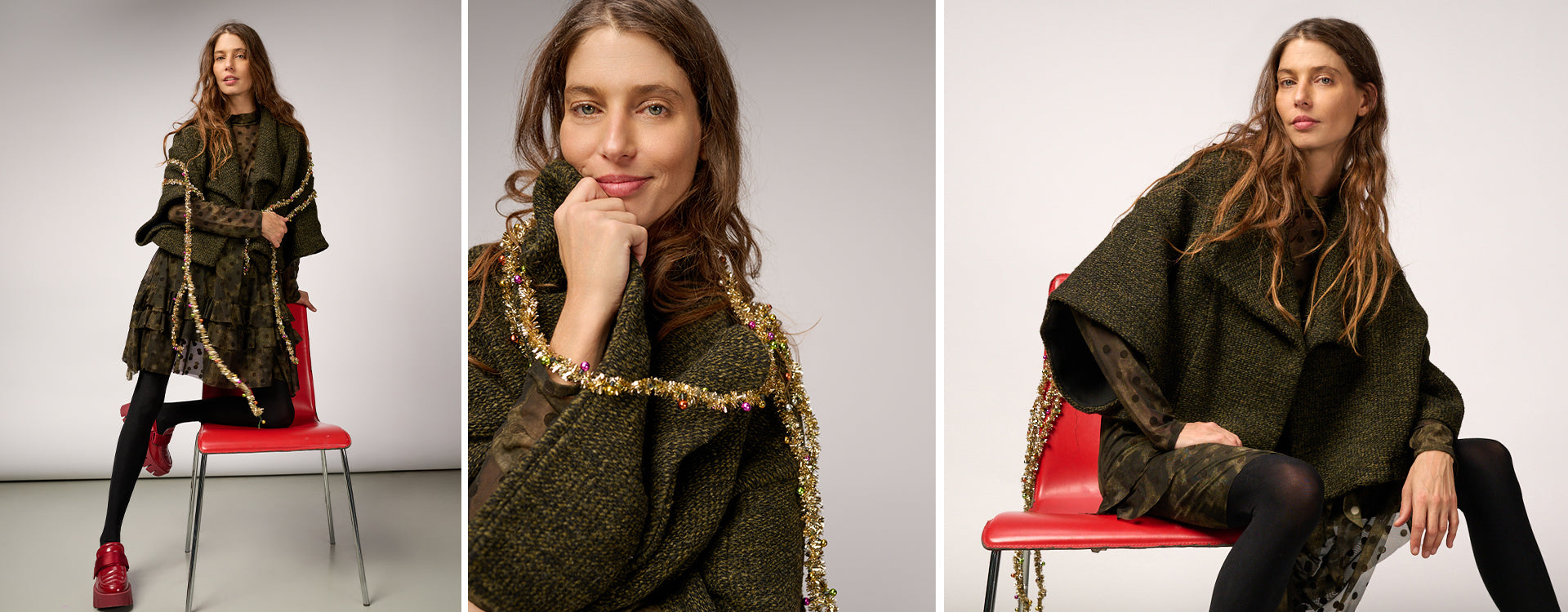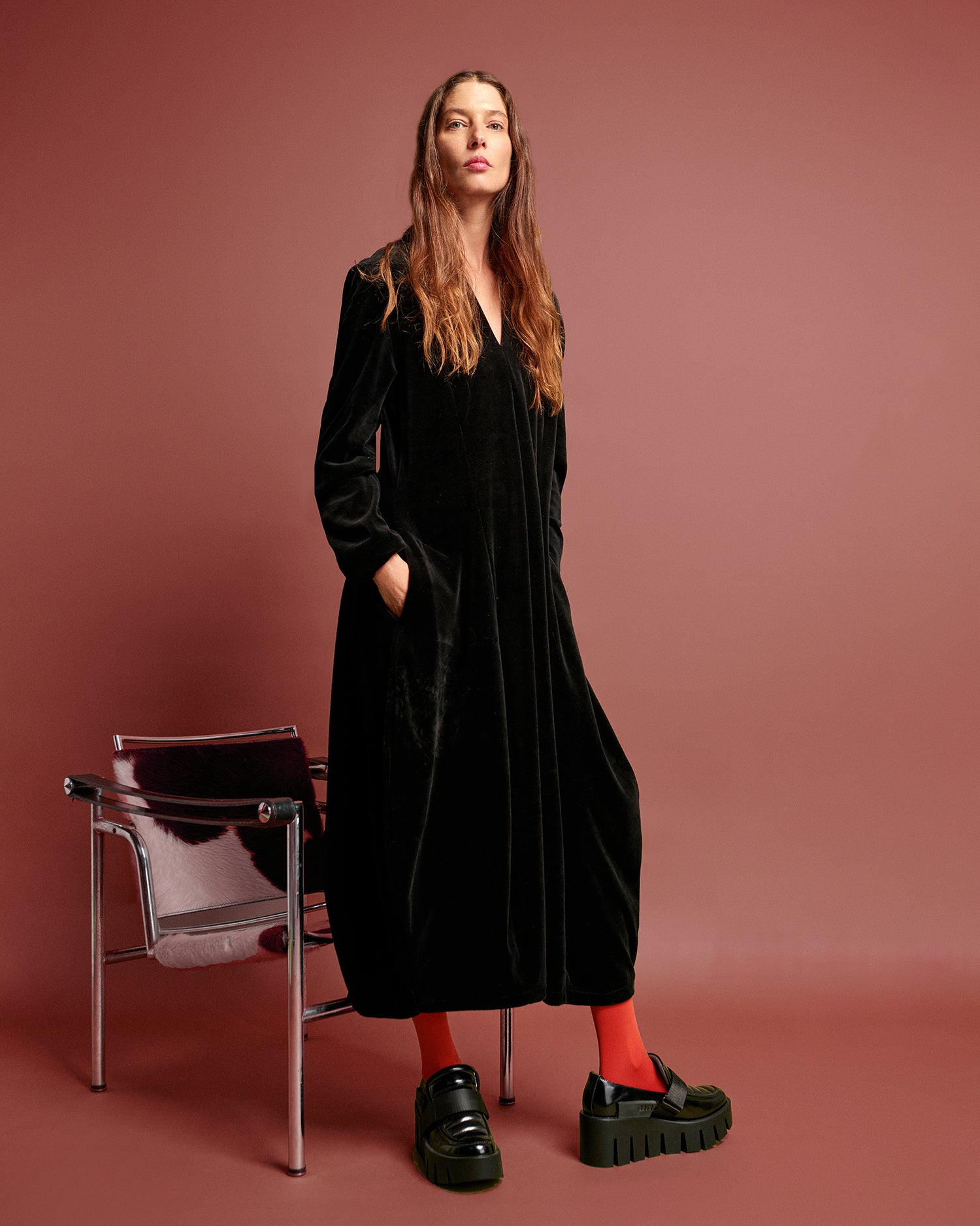A modern take on eveningwear with rich textures, sculptural shapes, and expressive prints. Designed for comfort without compromising on drama.