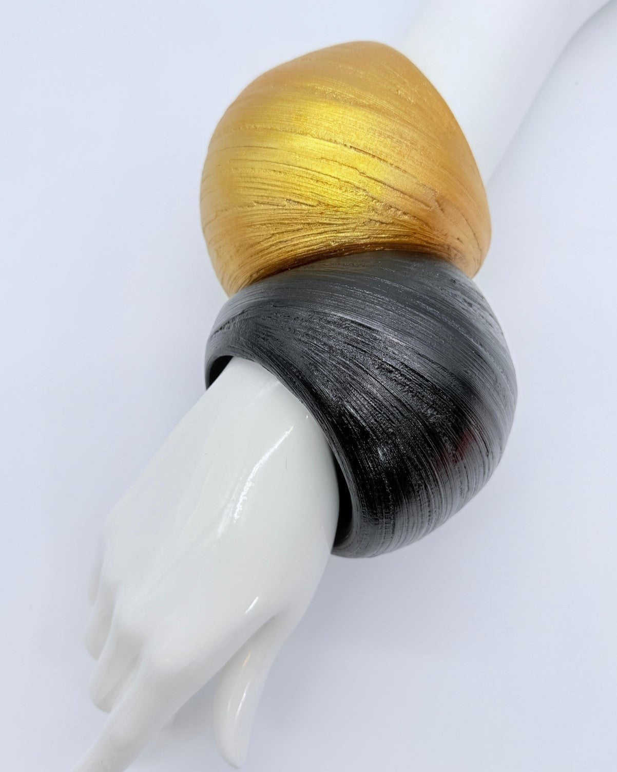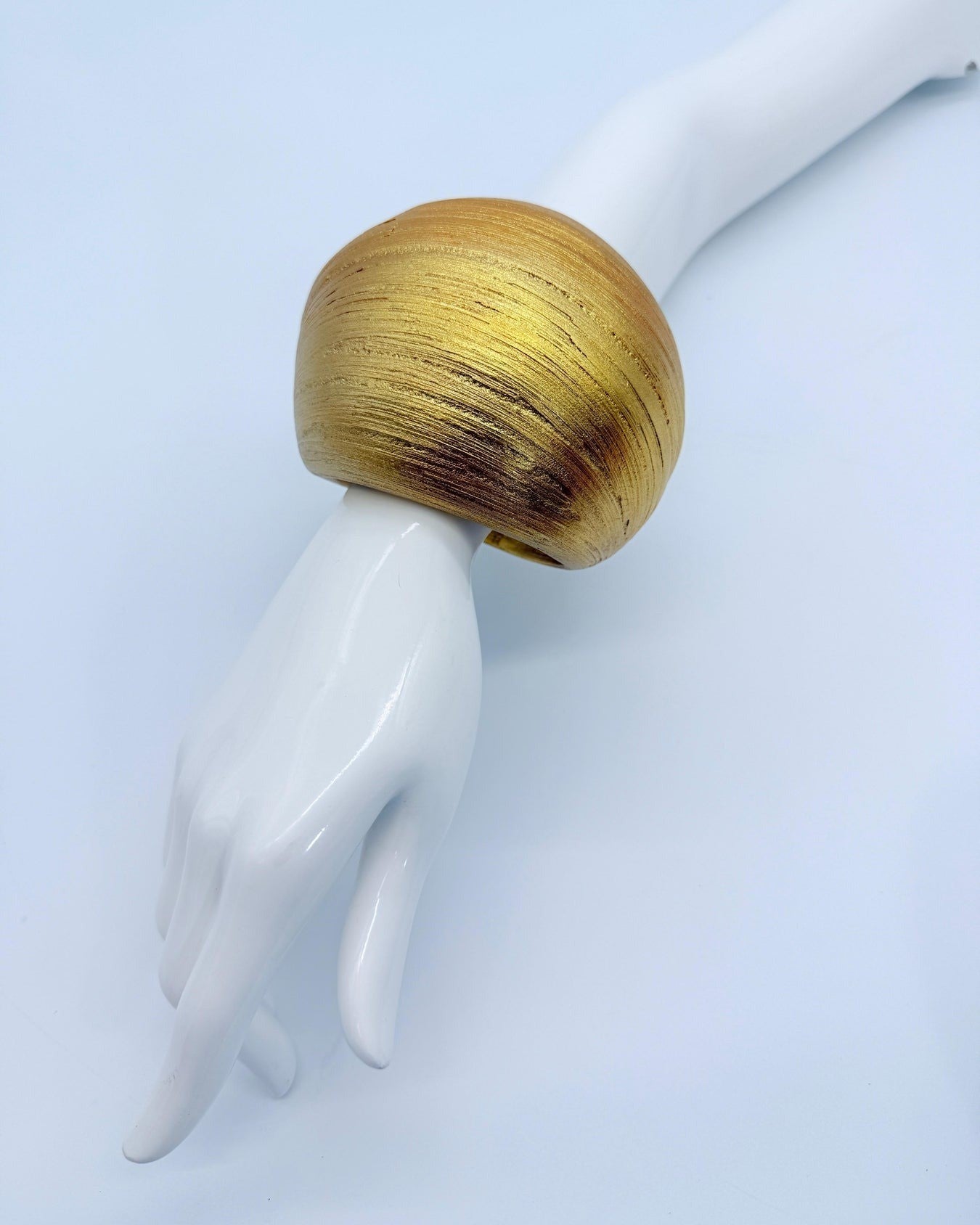 This handcrafted statement bracelet is made from natural sustainably-sourced bamboo, shaped into a smooth, round form that feels airy on the wrist while making a bold impression.