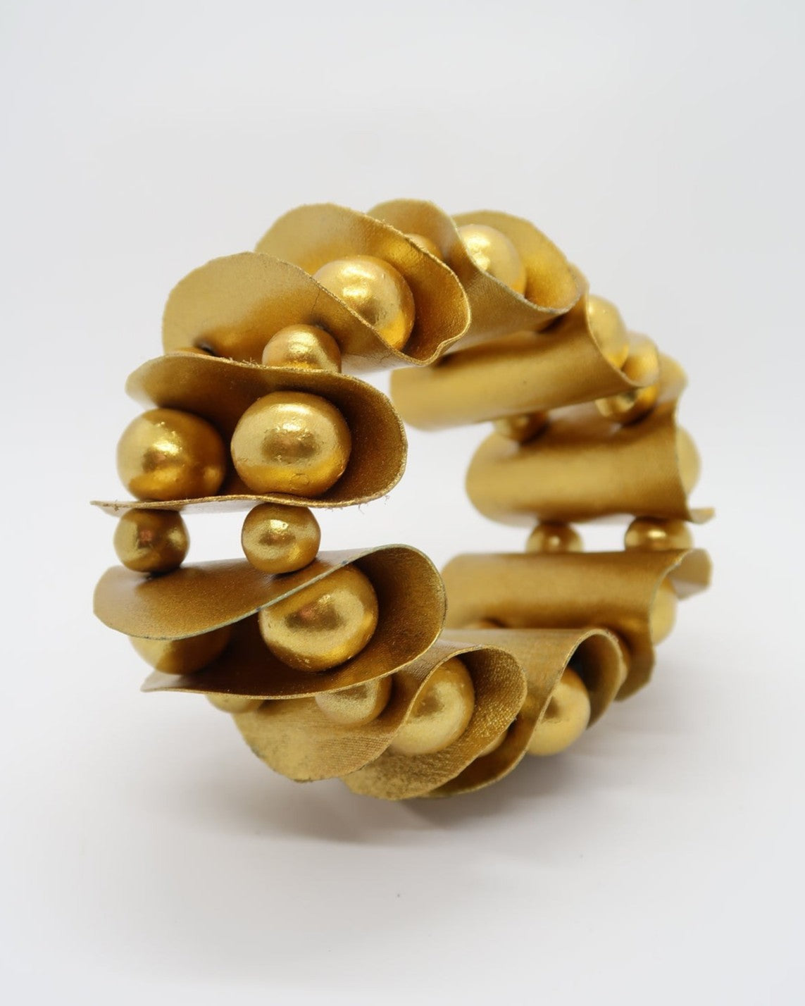 This unique bracelet features delicate petal-shaped flowers adorned with recycled wooden beads, creating a bold yet elegant statement accessory. Its elastic design ensures a comfortable fit, while its lightweight feel makes it easy to wear all day.