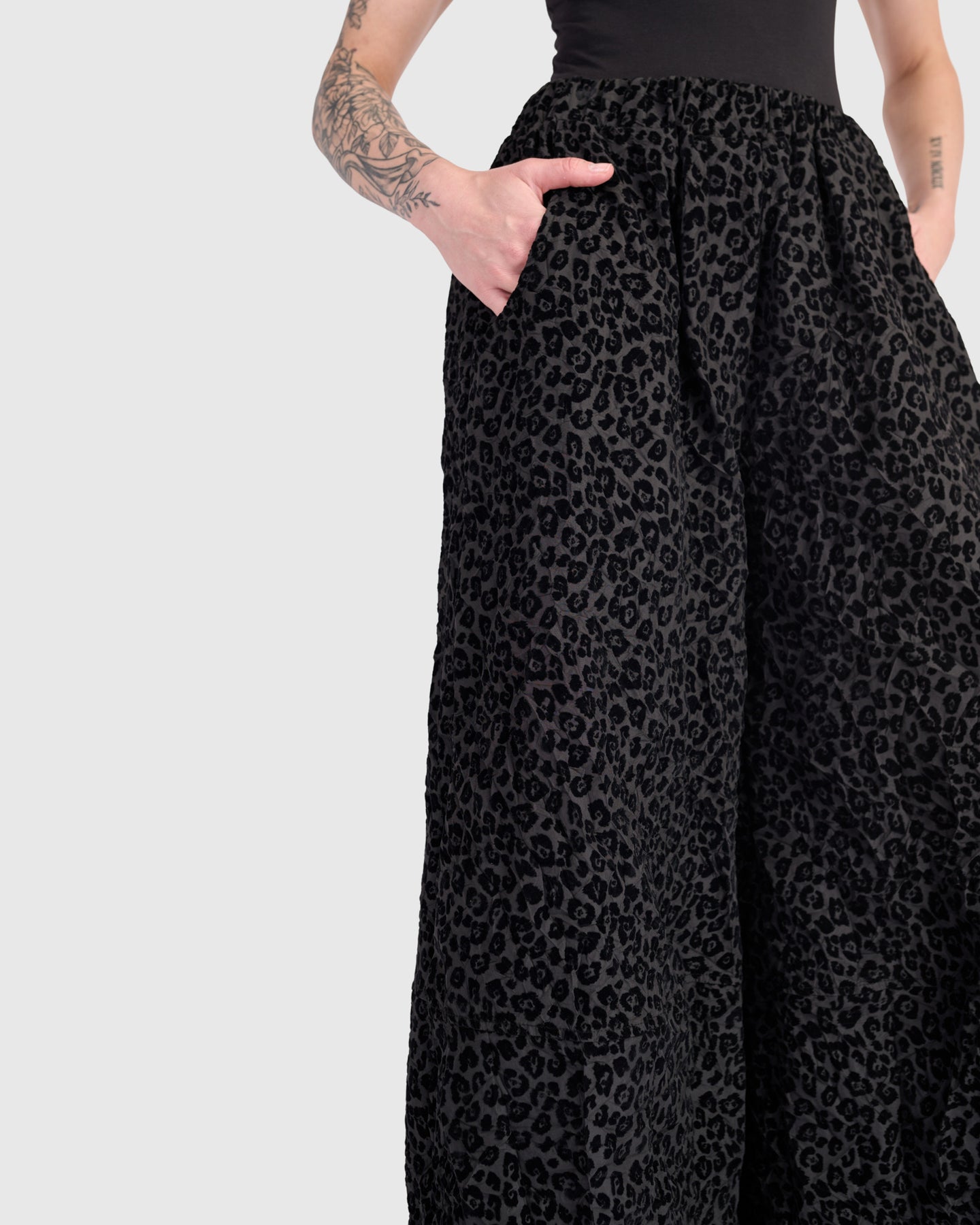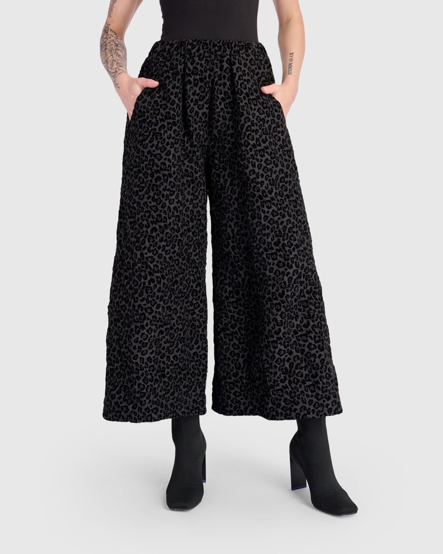 These statement pants offer easy movement and bold pattern play with their wide, cropped leg and velvet animal-print taffeta. The pull-on waistband provides a comfortable fit, while the silhouette pairs effortlessly with boxy tops and longline jackets.