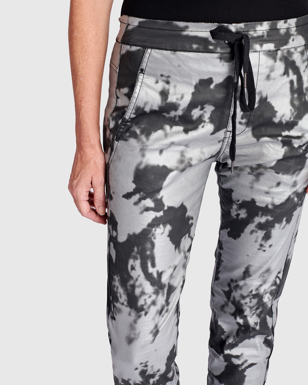 - Loose fit through shoulders, bust and body. Cinched at bottom with elastic in hem