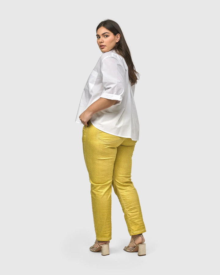 Our ultra-soft cult favorite jean is here in a soft metallic honey. Thanks to a flattering mid-rise waist and a more relaxed taper than standard-issue skinny jeans, our beloved Iconics never feel skin-tight, just deliciously comfy! Detailed with creasing for that lived-in look. Drawstring stretch waist, mock fly, angled side pockets, yoked back with patch pockets, and rivet trim.