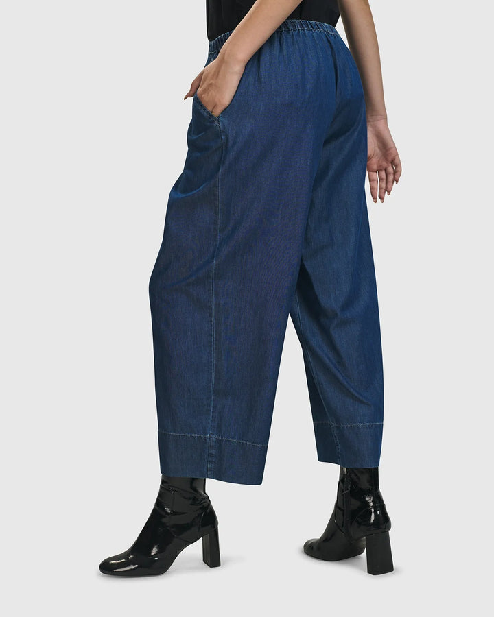 The best qualities of jeans and loungewear combine to create these mid-rise, relaxed straight-leg denim trousers. Made in soft 100% cotton denim, with side pockets and an all-around elastic waist.