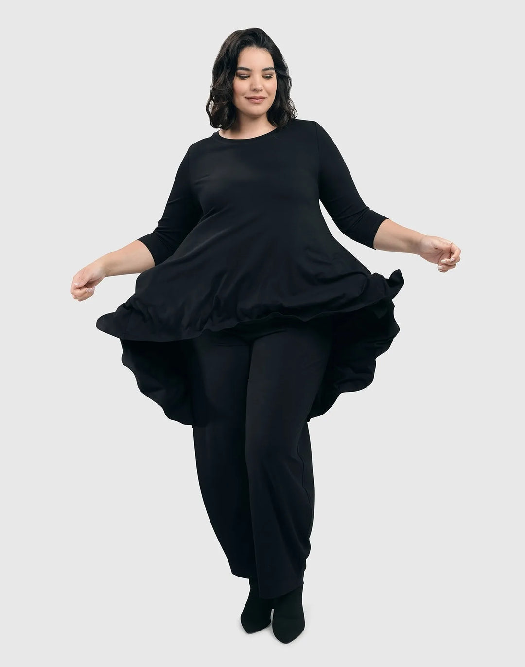 A refined update to the everyday tee. This relaxed-fit tunic is cut in a soft A-line shape with subtle cocooning at the hem, giving it an artful drape that moves beautifully. Crafted from breathable cotton jersey with a hint of stretch, it features long fitted sleeves and a wide neckline. Raw edges and side draping add a modern, deconstructed touch to this versatile layering piece.