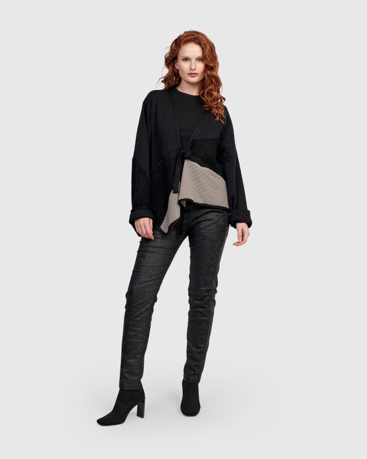 Voted best jeans for women over 50! You'll rock these subtle snake-print beauties with everything. Up close, the snake print has a sleek tonal grey sheen. The fit is soft, stretchy and amazing with a mid rise and relaxed taper. Stretch drawstring waist looks clean and neat. Mock fly, side seam pockets, back patch pockets and rivet trim.