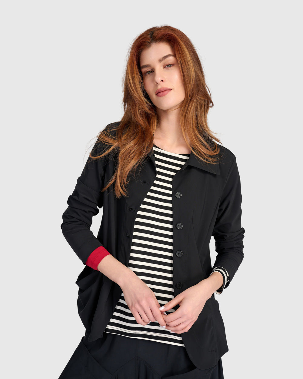 Clothes should fit your lifestyle, not the other way around! Meet Tekbika, an evergreen collection we reimagine every year featuring our signature techno fabric that is breathable, packable, everything-able. Combined with seasonless stripes and the never-out-of-fashion pop of red, these pieces are built to move through all your seasons of life.