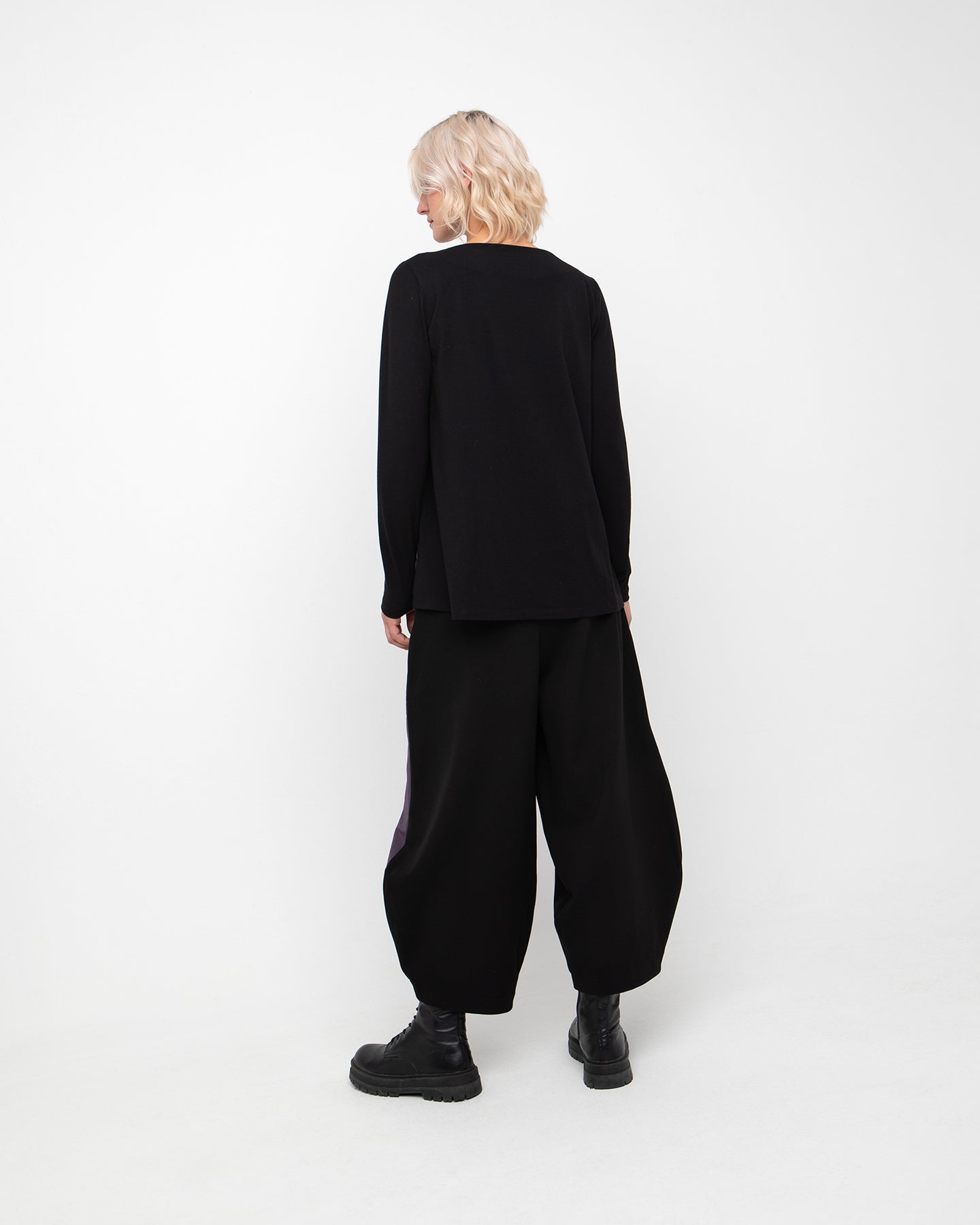 The Quasar Pocket Top contrasts softness and structure with its stretch jersey base and crisp taffeta accents. A slim fit through the top flares gently to a subtle A-line, complete with patch pockets for utility. Ideal for elevating everyday looks with textural dimension.