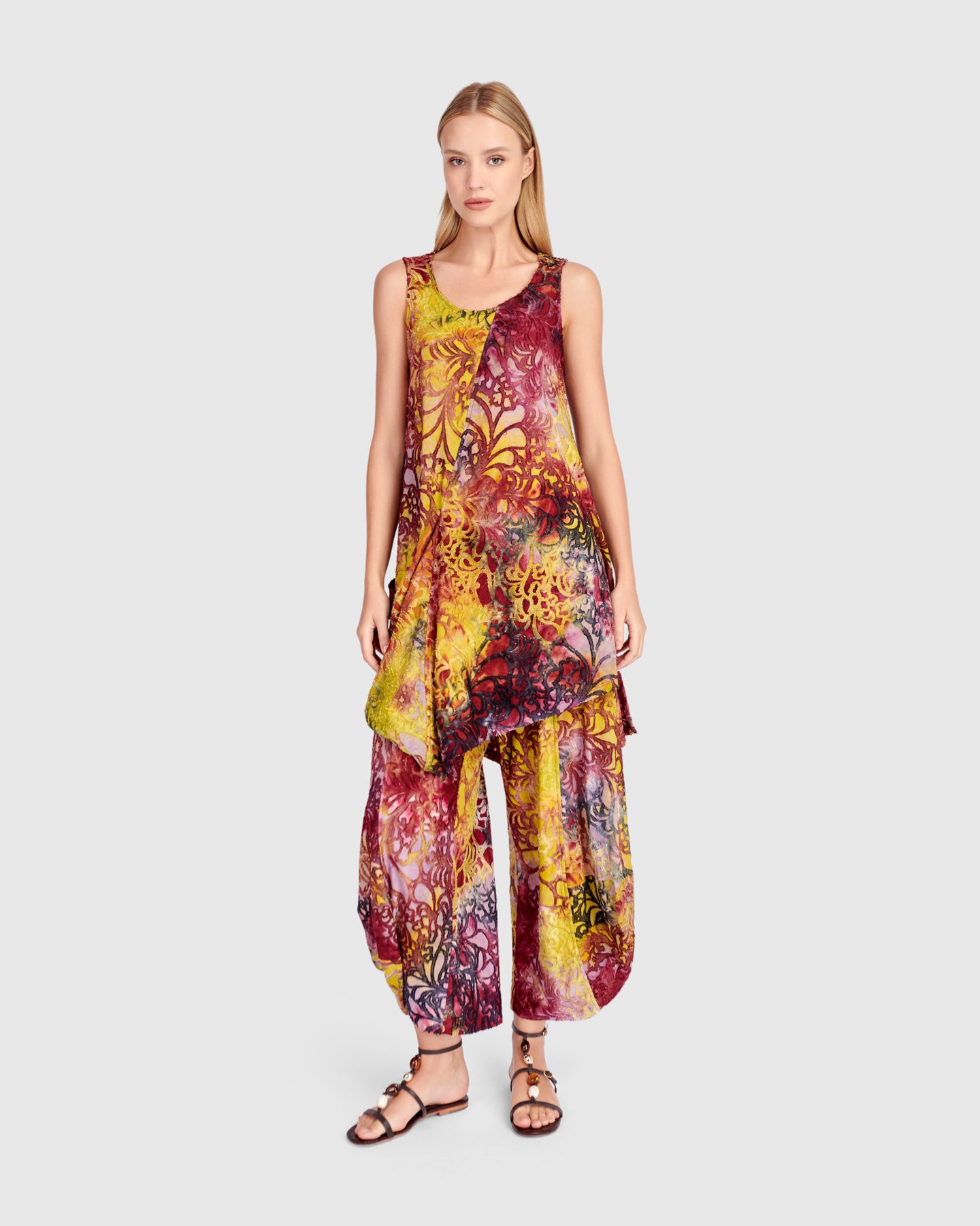 Rendered in featherlight burnout jersey, this full-length punto pant offers softness and stretch with graphic impact. The high-rise cut skims the hips before falling into a relaxed leg with the signature pouf hem. An elastic waistband keeps the fit easy and flexible, creating a comfortable statement pant with fluid drape and modern edge.