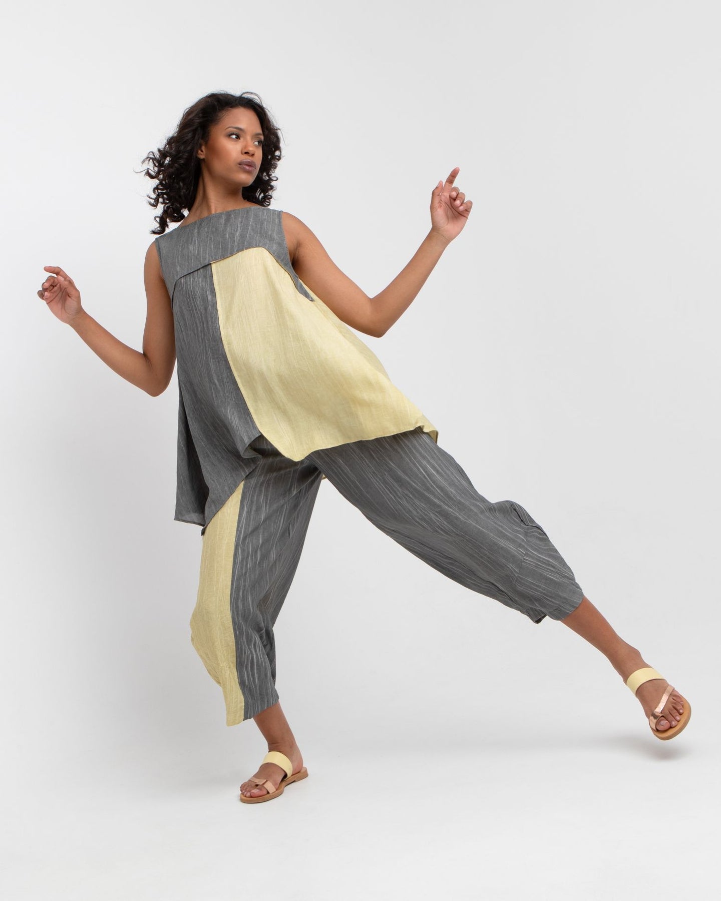 This cropped lantern pant features a gently tapered leg and relaxed fit through the thigh for easy movement. The smooth viscose blend has a subtle washed finish that lends a laid-back look. With practical side pockets and a partially elasticized waist, it is designed for ease without sacrificing polish.