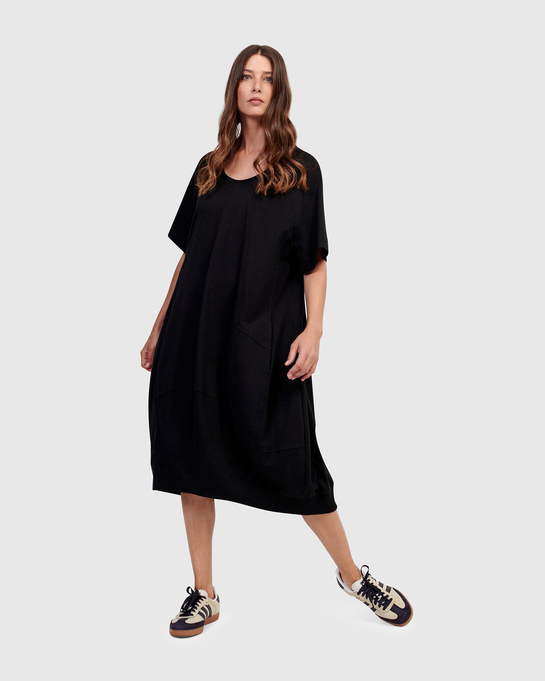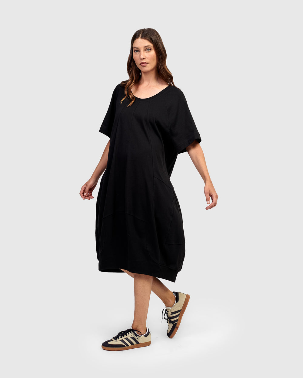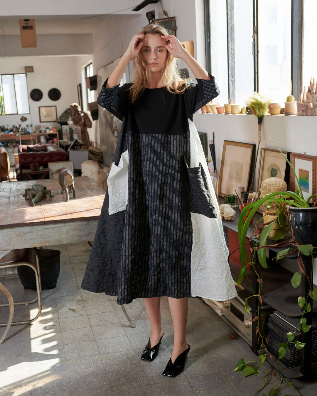 Too cool for school? Not here! This study-savvy style channels both a scholarly vibe with classic Alembika flair (see: classic men's shirting with a feminine twist) Made in a breathable cotton poplin, this oversized shirt dress has an A-line silhouette with a gathered drop waist, Mandarin collar with full button placket, three quarter length gathered puff sleeves, and front patch pockets.