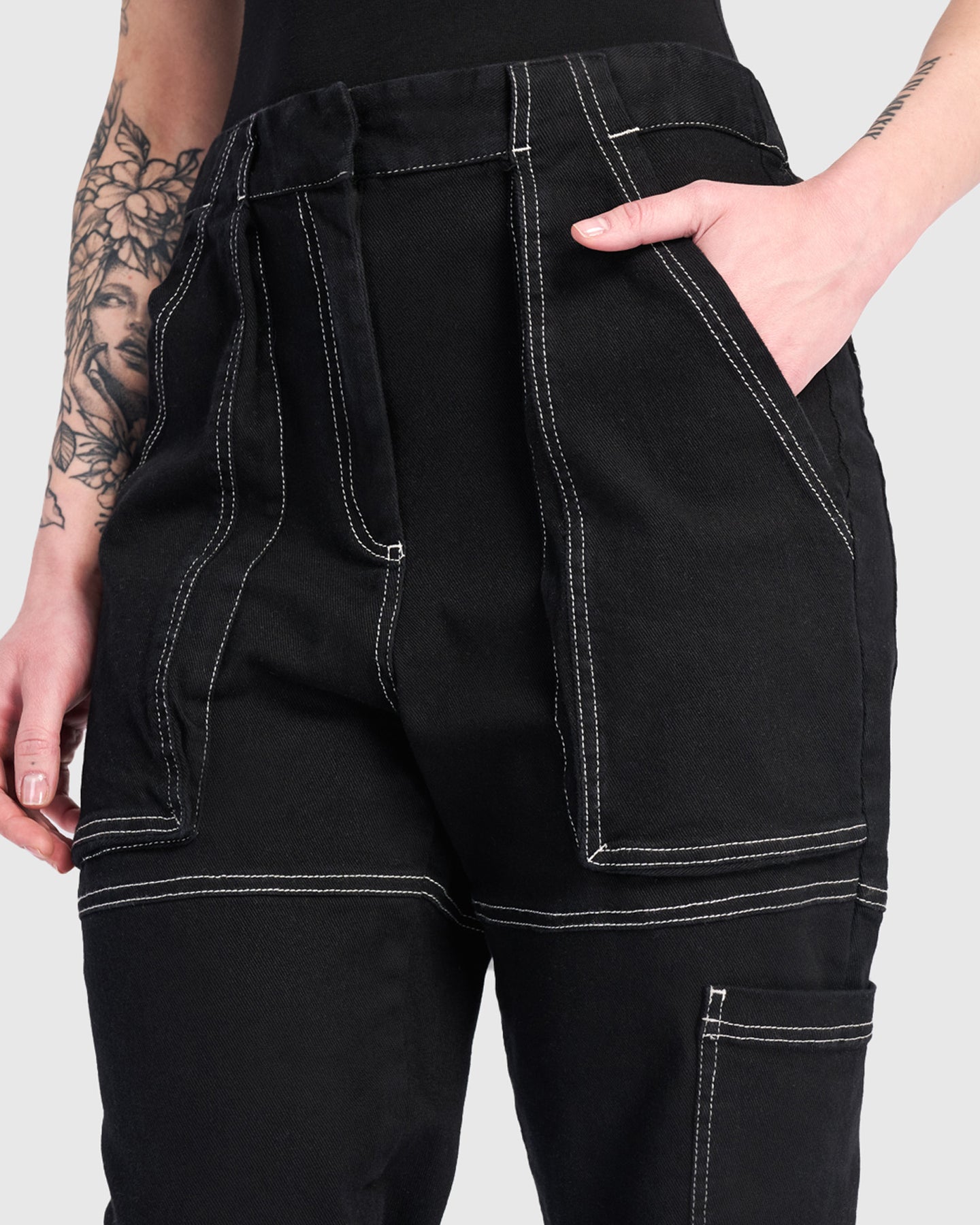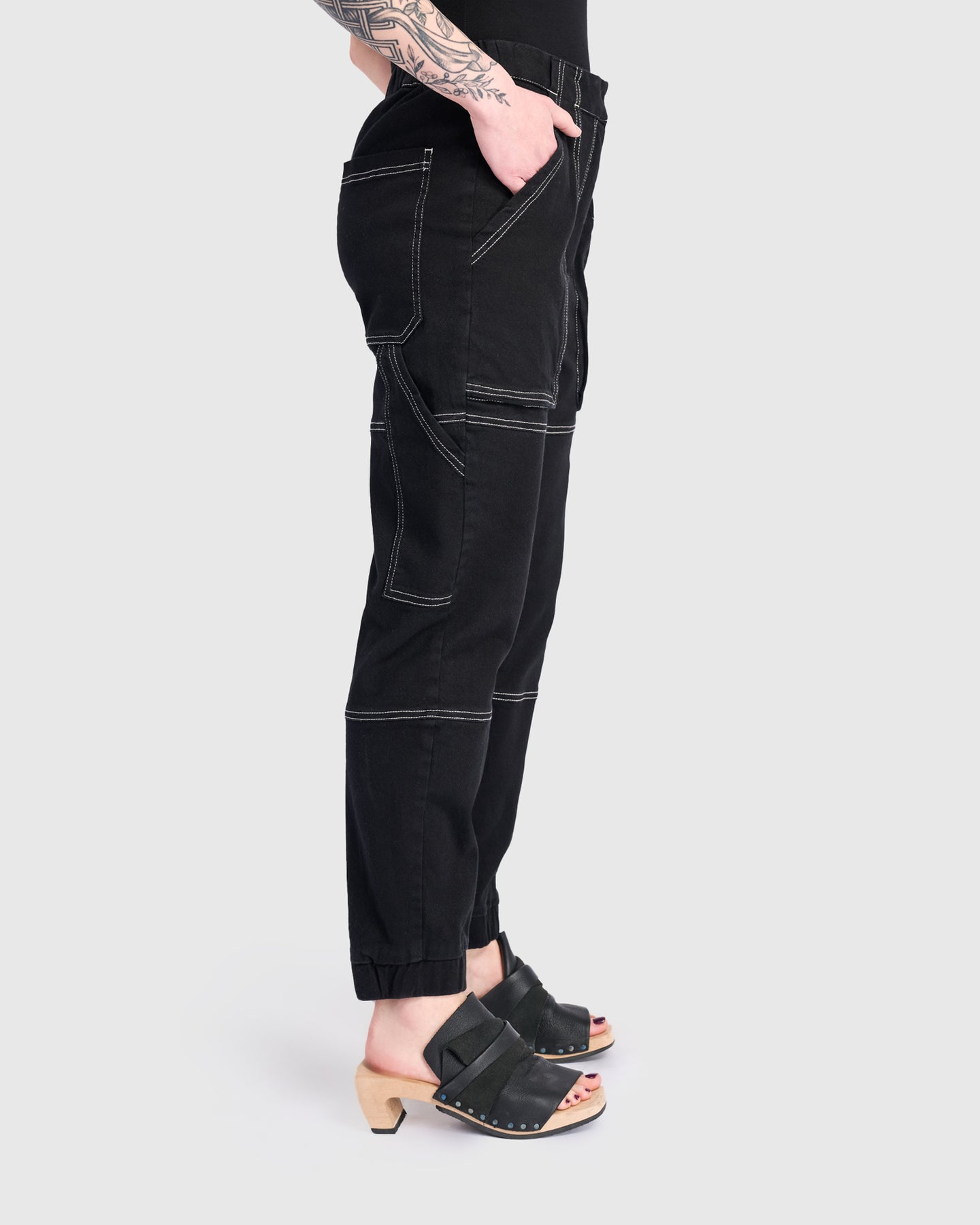 Cut in a stretch cotton twill, this high-rise jogger pant offers a slim yet relaxed fit through the hips and leg. The tapered ankle and elastic cuff create a clean finish, while multiple pockets add utility. Designed with a button and zip closure, this tailored jogger balances structure and comfort for everyday wear.