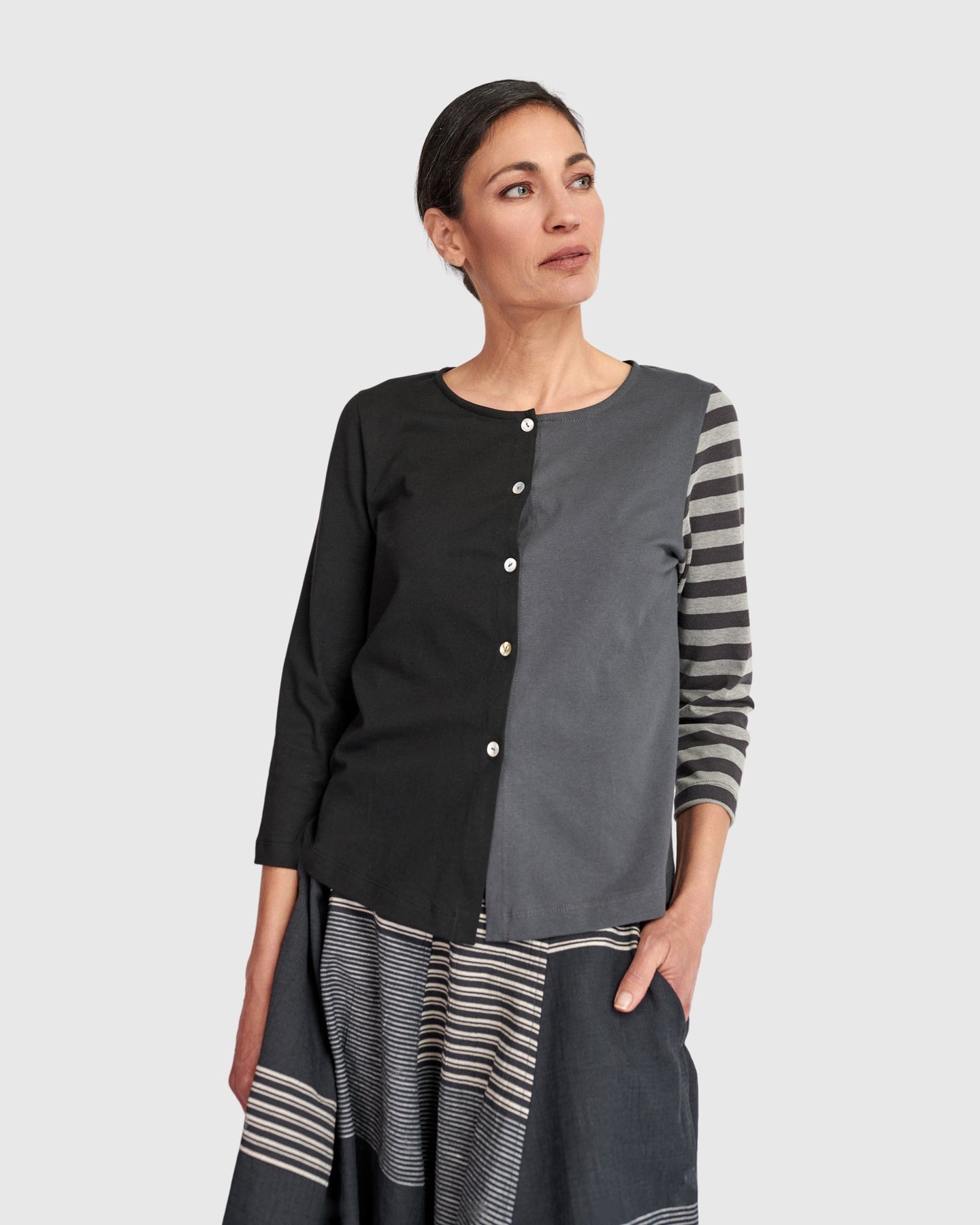 This colorblock cardigan is designed with a clean, straight shape that'slayers easily without adding bulk. Lightweight knit keeps it comfortable and breathable, while set-in sleeves and a crew neckline give it a refined finish. Shell buttons complete the full placket, making it an easy, polished layer over dresses and tees.
