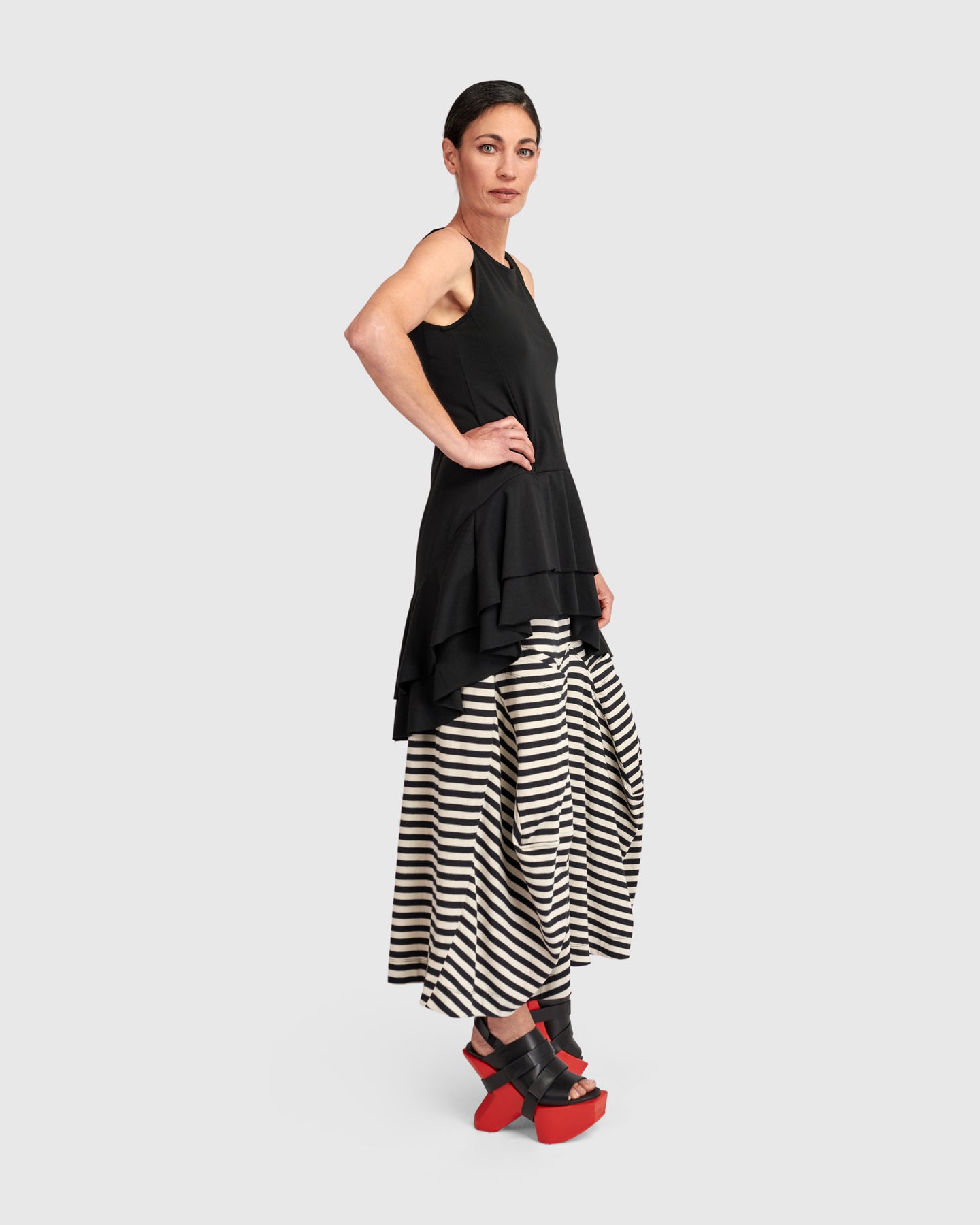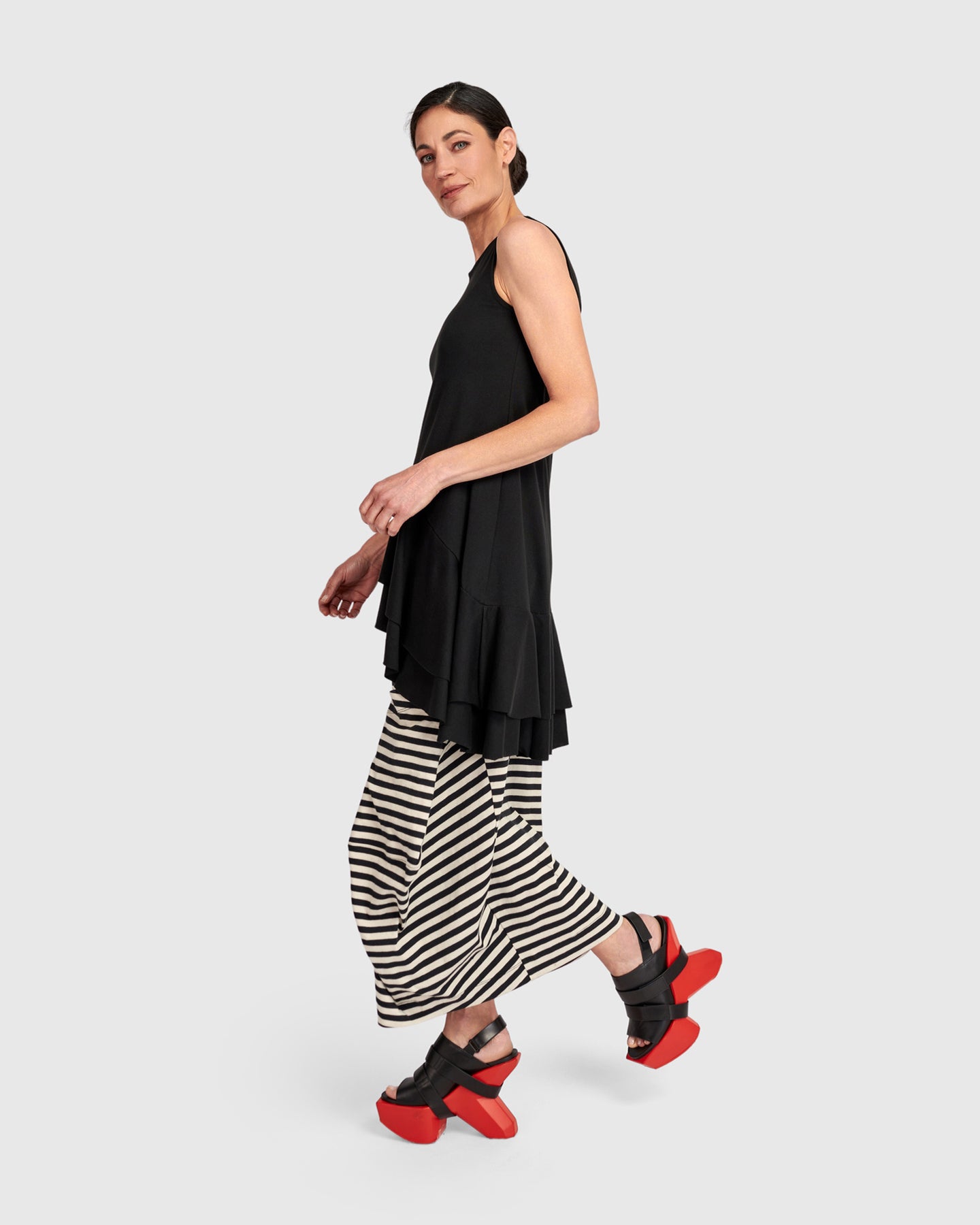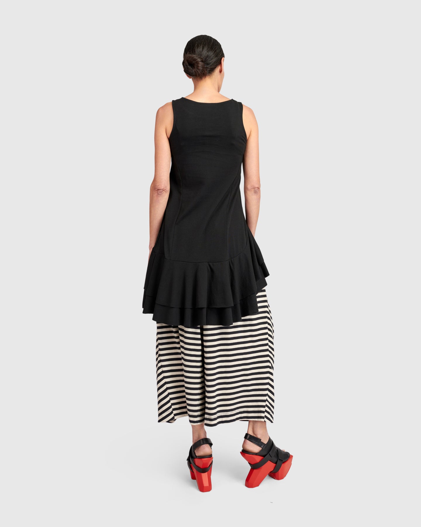 This sleeveless tank is cut close through the bust before releasing into a soft A-line shape. Crafted from breathable cotton jersey, it feels light and comfortable against the skin. Tiered raw-edge ruffles add texture and movement, giving this simple silhouette a feminine, expressive finish. An easy warm-weather piece that layers well or stands on its own.