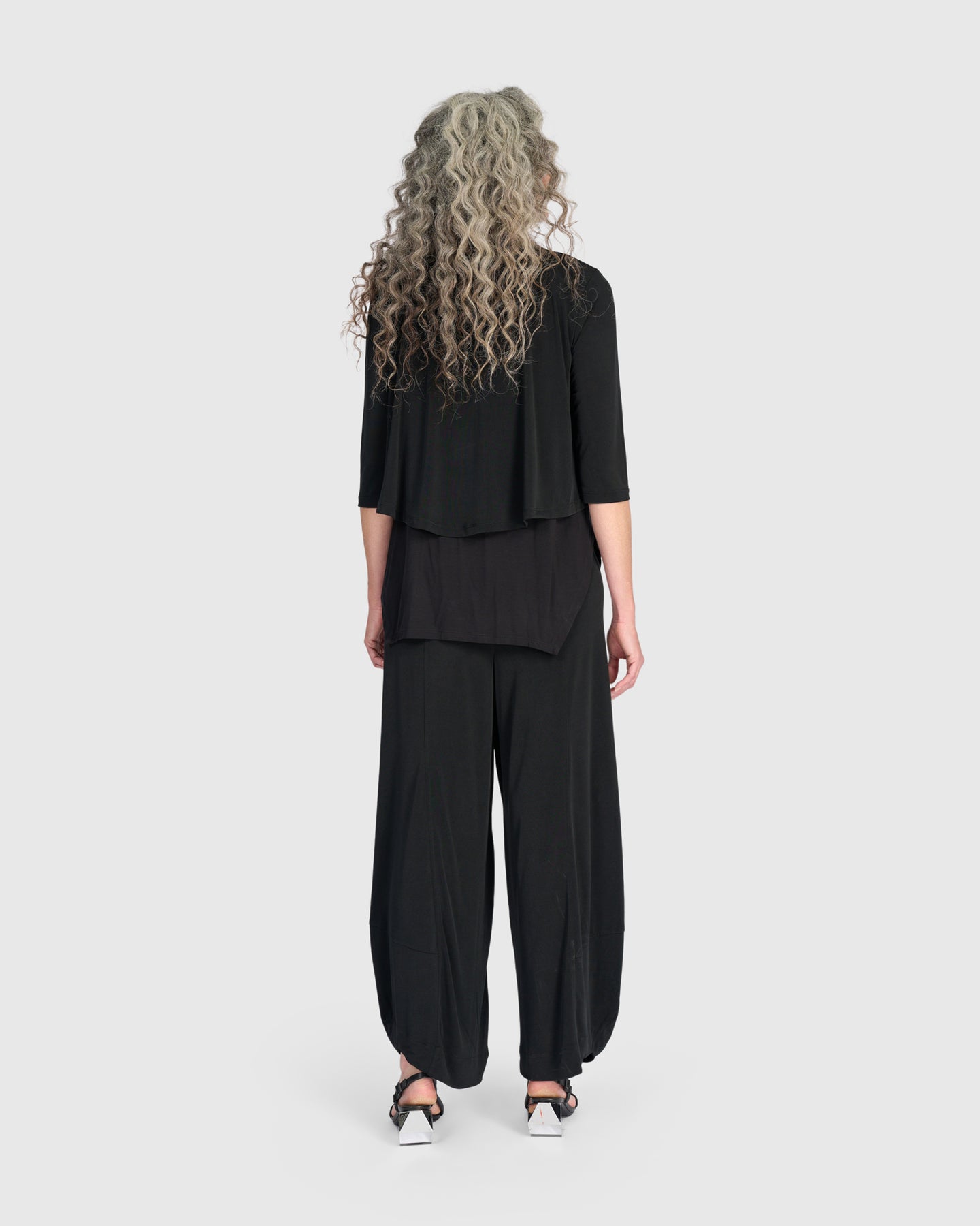 The Essential Slinky Cropped Cardigan in Black is a light layer that completes any look with clean lines and refined texture. Its boxy, cropped shape is balanced by 3/4 fitted sleeves and a subtly curved high-low hem. Crafted in stretchy matte jersey with a classic V-neck and shell buttons, it's a sleek essential for dressing up or down.