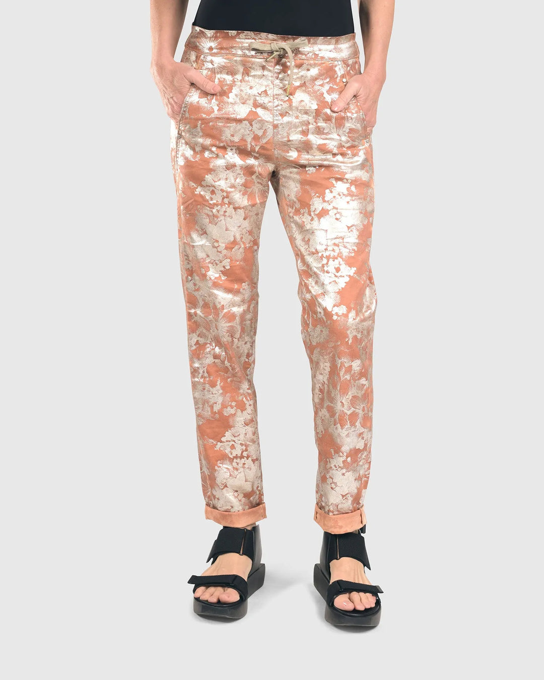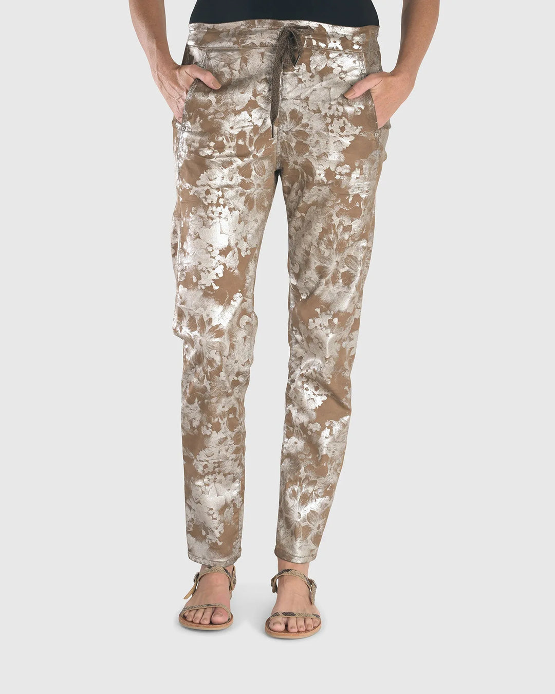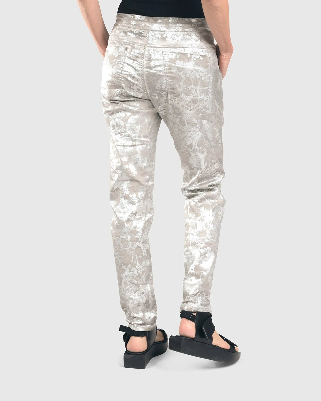 The floral stretch jeans come with a drawstring attached to the waistline to make your look extraordinary. Alembika’s array of women's floral print jeans are suggested to be machine washed that keep the fabric bright and new for a long time. You can choose from different colors that match your vibe. The mock fly and angled side pockets are a flavor enhancer to our floral jeans.