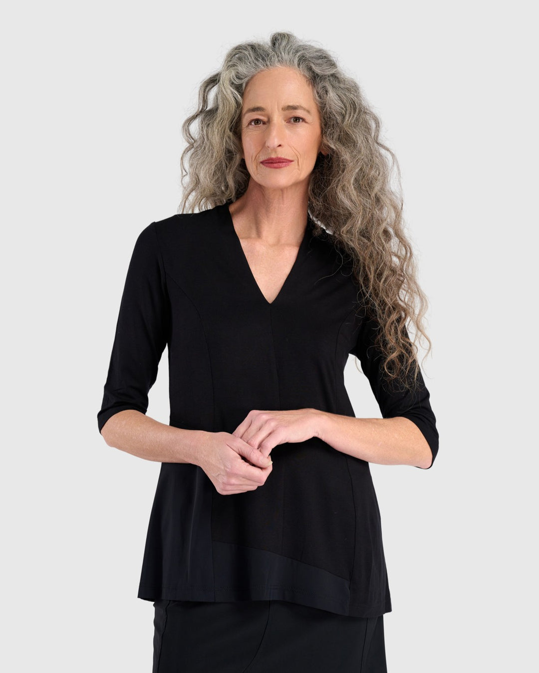 The Blackbird Sweater is a modern classic, offering a sleek cropped shape with softly fuzzy texture. Tailored with a straight silhouette and full-length sleeves, it's finished with colorblock ribbed details and shell buttons for a polished yet playful look.